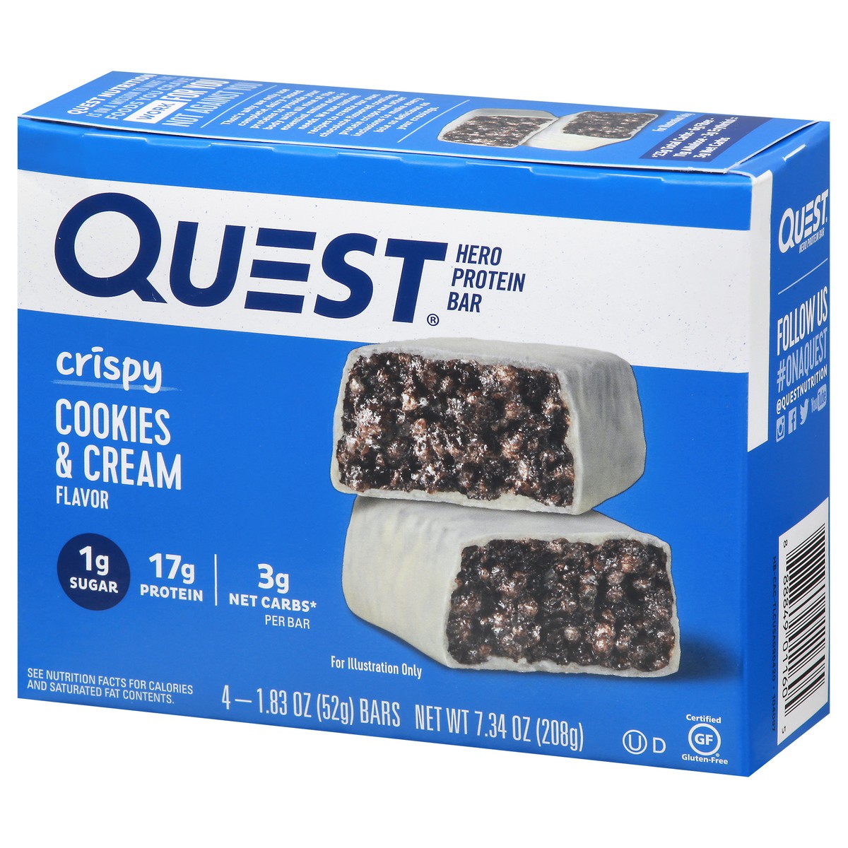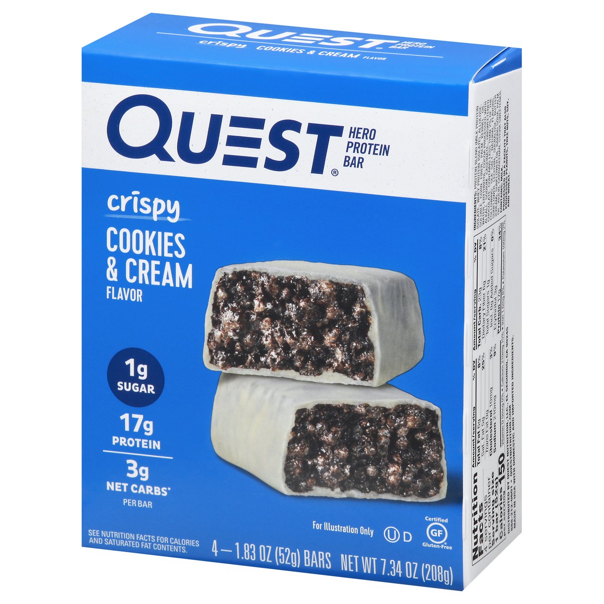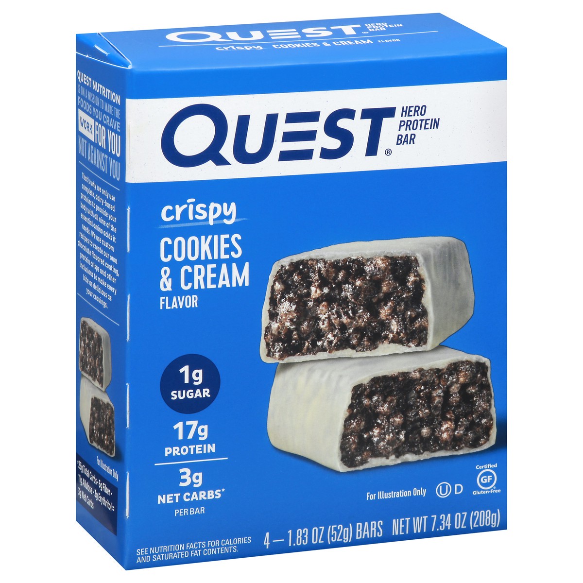 Quest Nutrition is on a mission to make the foods you crave work for you, not against you. That's why the Quest Cookies & Cream Hero Protein Bar has 17g protein, 1g sugar and 3g net carbs per bar. Dis…