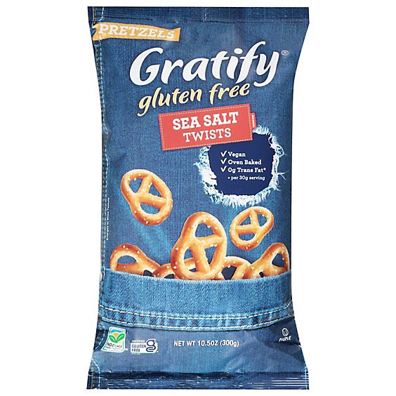 Wheat free. Dairy free. Egg free. Non-GMO ingredients. Certified gluten-free. Get gratified. Good to Know: Gratify Gluten Free Pretzels are baked snacks that contain no food coloring or preservatives …