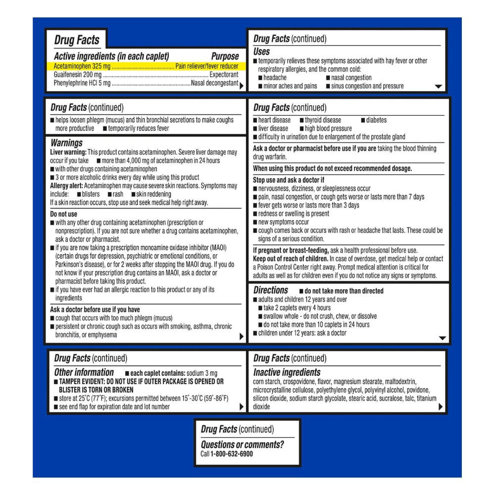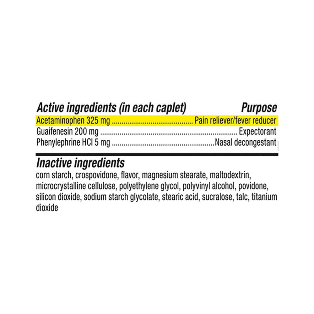 Kroger® Sinus Congestion & Pain DayTime Caplets make your day brighter. Containing acetaminophen as a pain reliever/fever reducer and guaifenesin, an expectorant that helps with mucus and chest conges…