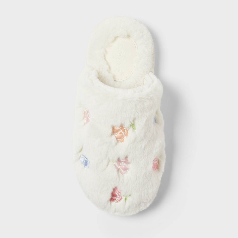 Kids' Embroidered Flower Slippers - Cat & Jack™ Ivory 13-1