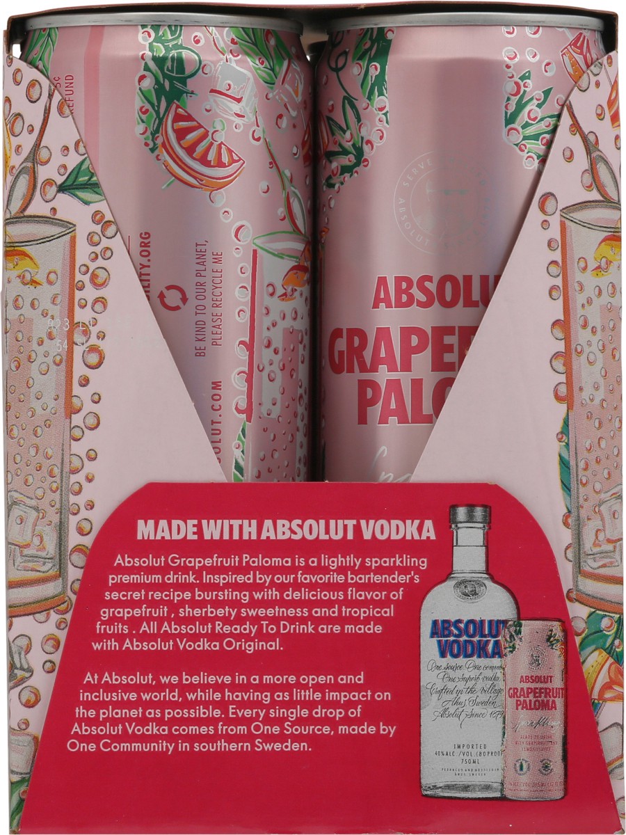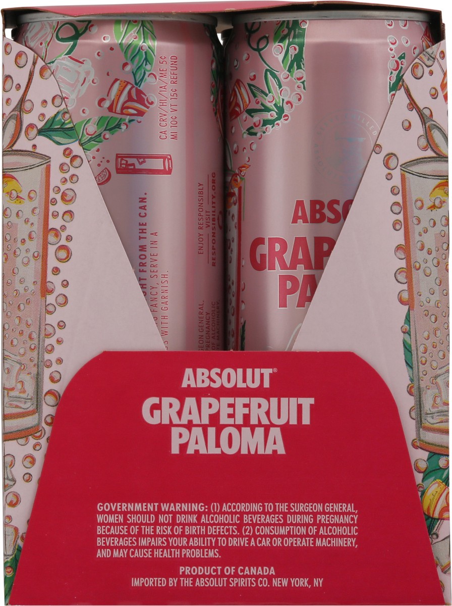 - INCLUDES: Four 12 fl oz cans of Absolut Grapefruit Paloma; 14 proof or 7% alcohol by volume; Enjoy and drink responsibly