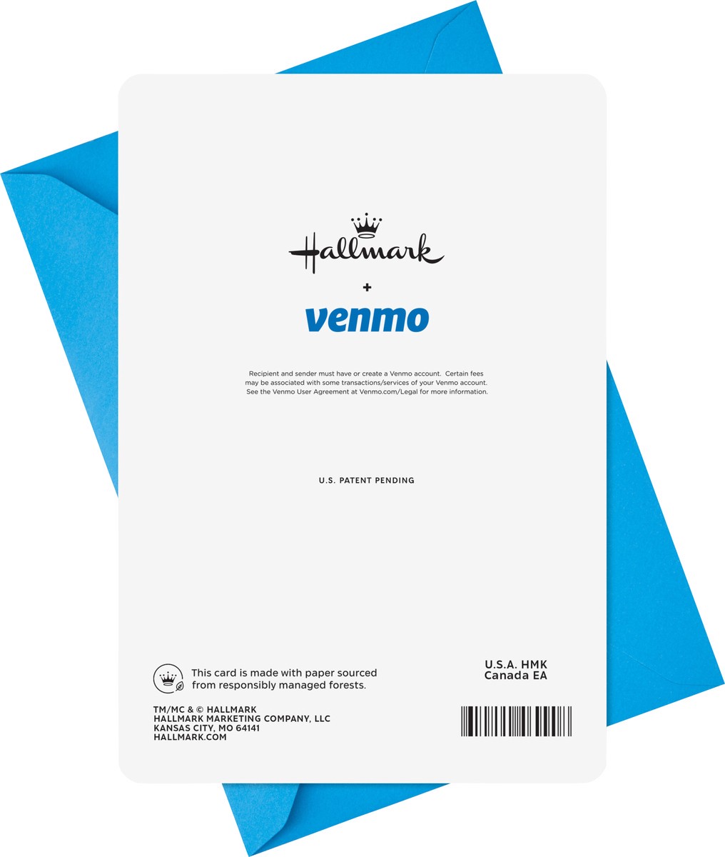 Send money and a smile with Hallmark + Venmo Cards. Just scan the unique code in the card, choose the amount you want to give, and write a message. When the recipient opens it, they'll scan the code t…