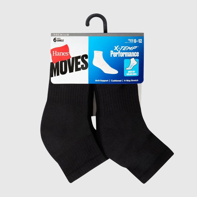 Hanes Premium Men's Hanes Moves Premium Performance Cushioned Ankle Socks 6pk - Black 6-12: Breathable, Moisture Wicking, Midweight