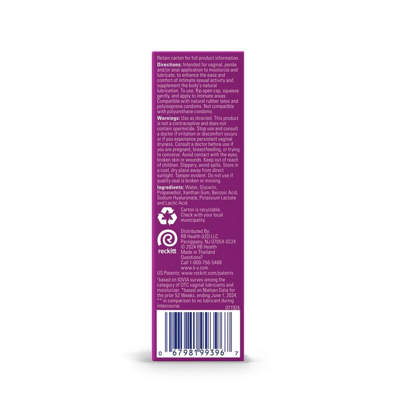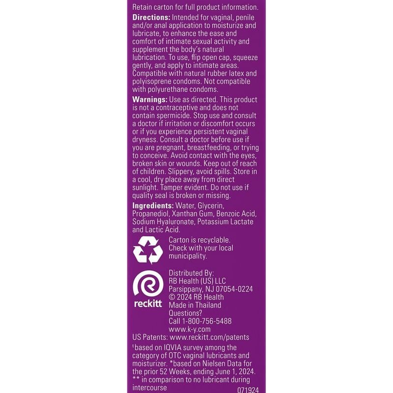 KY Natural Feeling with Hyaluronic Acid personal lube provides long lasting hydration for better intimacy. The silky smooth water based lube complements your natural lubrication and enhances comfort d…
