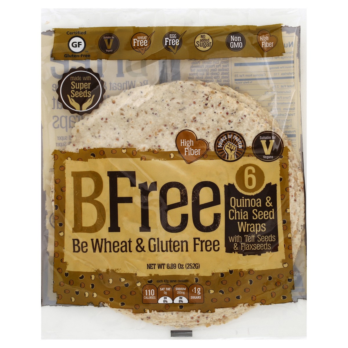 With teff seeds & flaxseeds. Be wheat & gluten free. Made with super seeds. Certified gluten-free. Suitable for vegans. Wheat free. Egg free. No added sugar. Non GMO. High fiber. Source of protein. Nu…