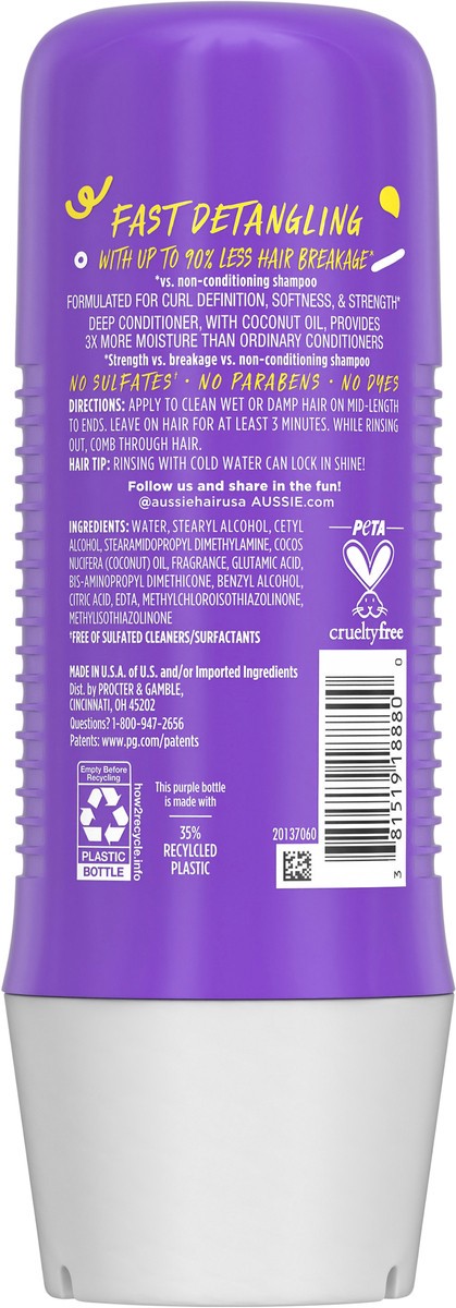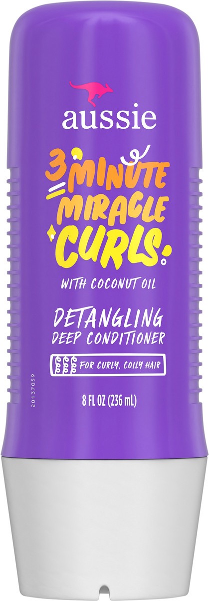 Aussie 3 Minute Miracle Curls Detangling Deep Conditioner Treatment with Coconut Oil, 8 fl oz, Paraben and Sulfate Free