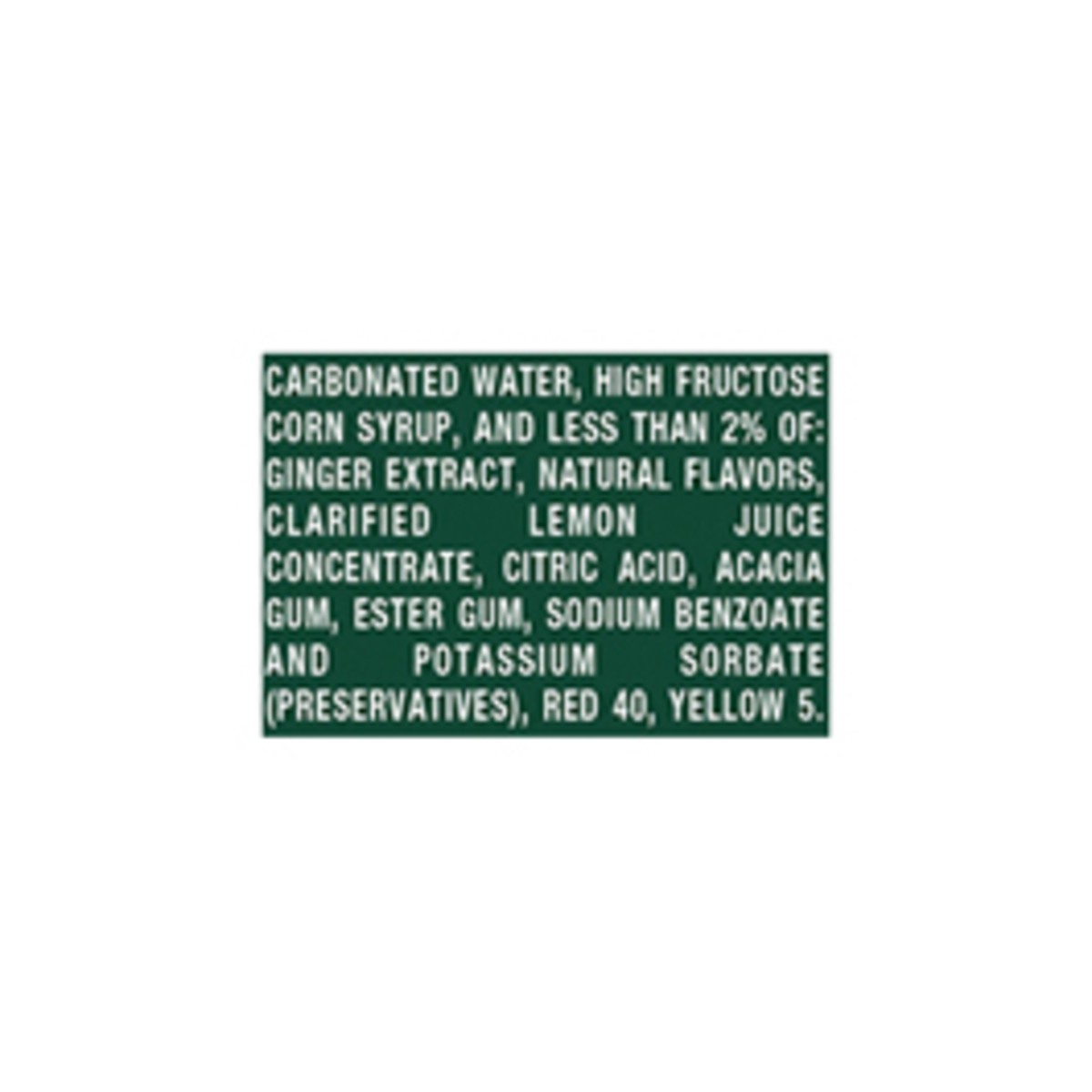 Carbonated Water, High Fructose Corn Syrup, and Less than 2% of: Ginger Extract, Natural Flavors, Clarified Lemon Juice Concentrate, Citric Acid, Acacia Gum, Ester Gum, Sodium Benzoate and Potassium S…