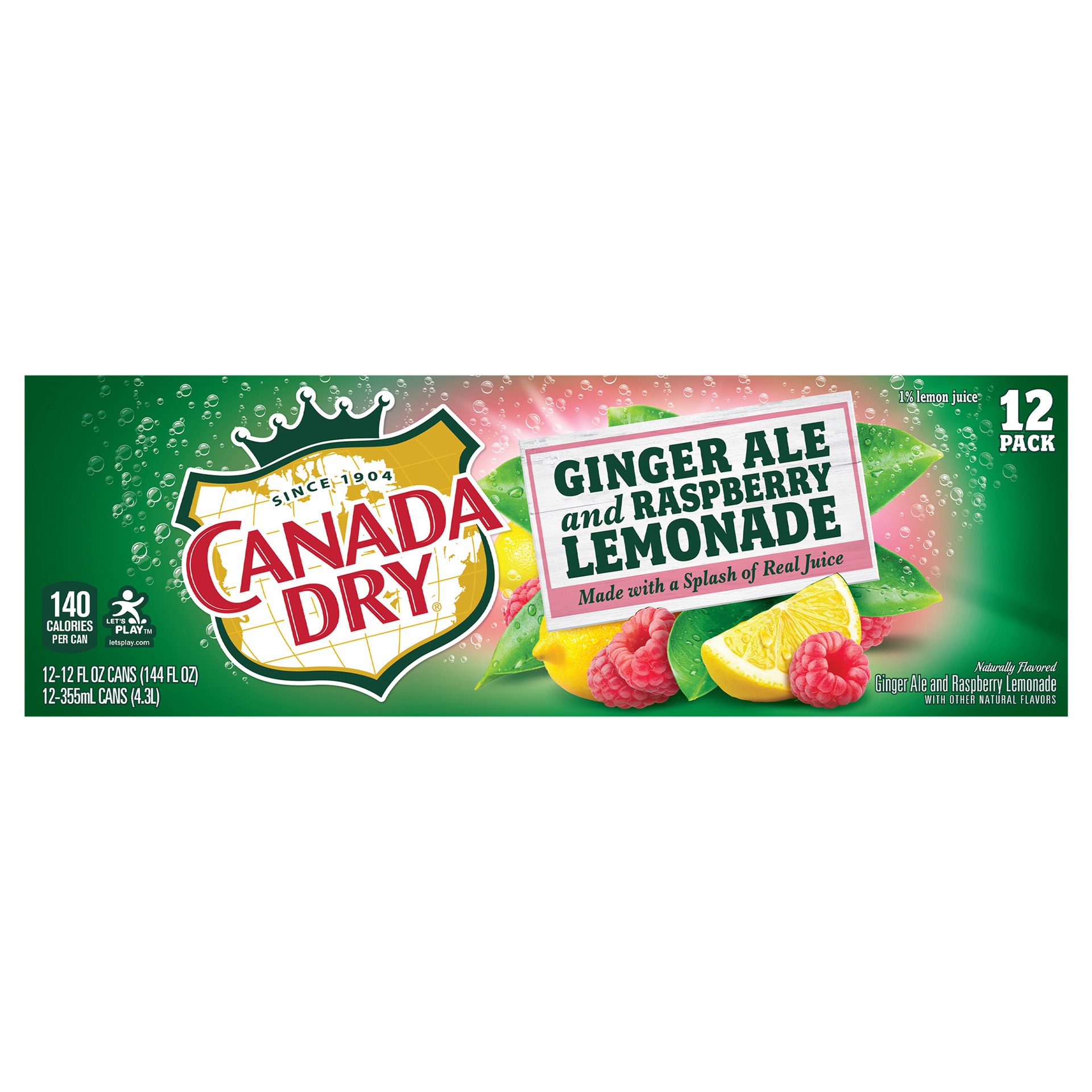 Canada Dry Ginger Ale and Raspberry Lemonade Soda, 12 Fl Oz Cans, 12 Pack