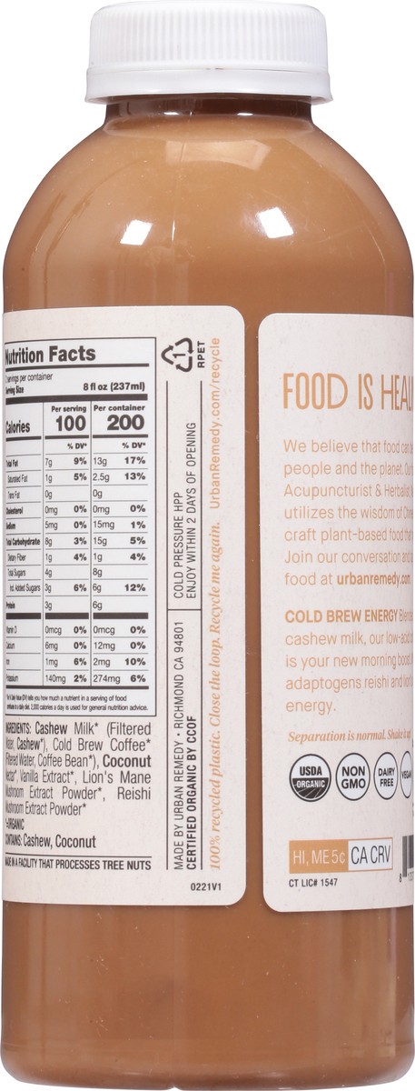 Urban Remedy Organic Cold Brew Energy Coffee with Cashew Milk and Adaptogens - 16 fl oz
