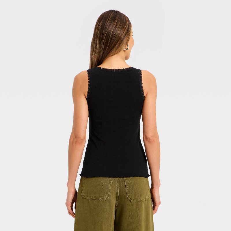 Women's Rib Lace Tank Top - Universal Thread™ Black M
