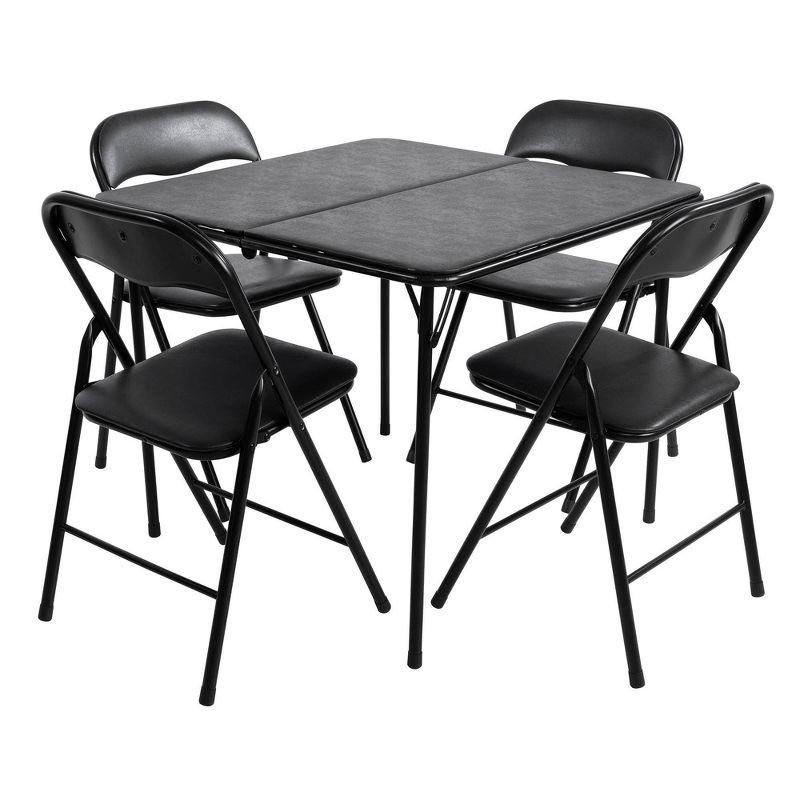 Peakform 5pc Folding Table Set Black: Vinyl Padded, Space-Saving Storage, No Tools Assembly