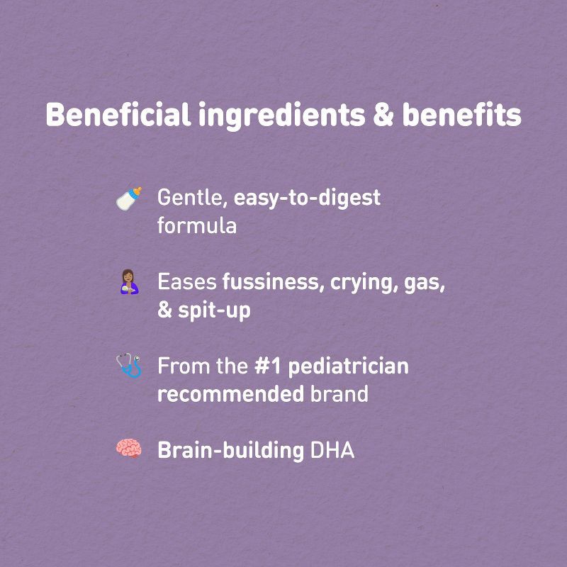 - GENTLE, EASY-TO-DIGEST BABY FORMULA: Made with proteins that are gentle on tiny tummies, specially designed to be easy to digest.
