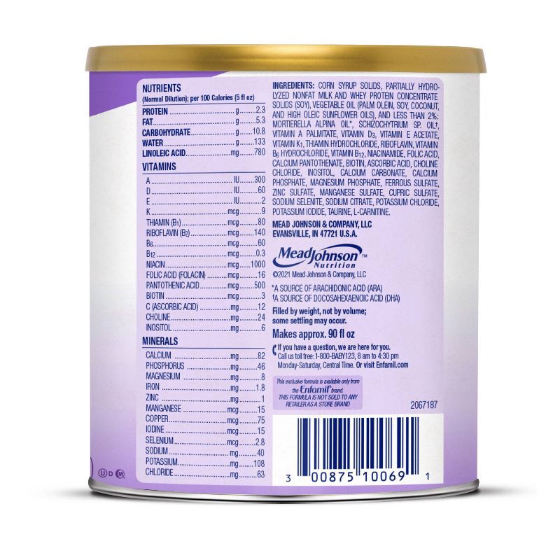 Corn Syrup Solids, Partially Hydrolyzed Nonfat Milk and Whey Protein Concentrate Solids (Soy), Vegetable Oil (Contains One or More of the Following: Palm Olein Oil, Coconut Oil, Soy Oil, High Oleic Su…