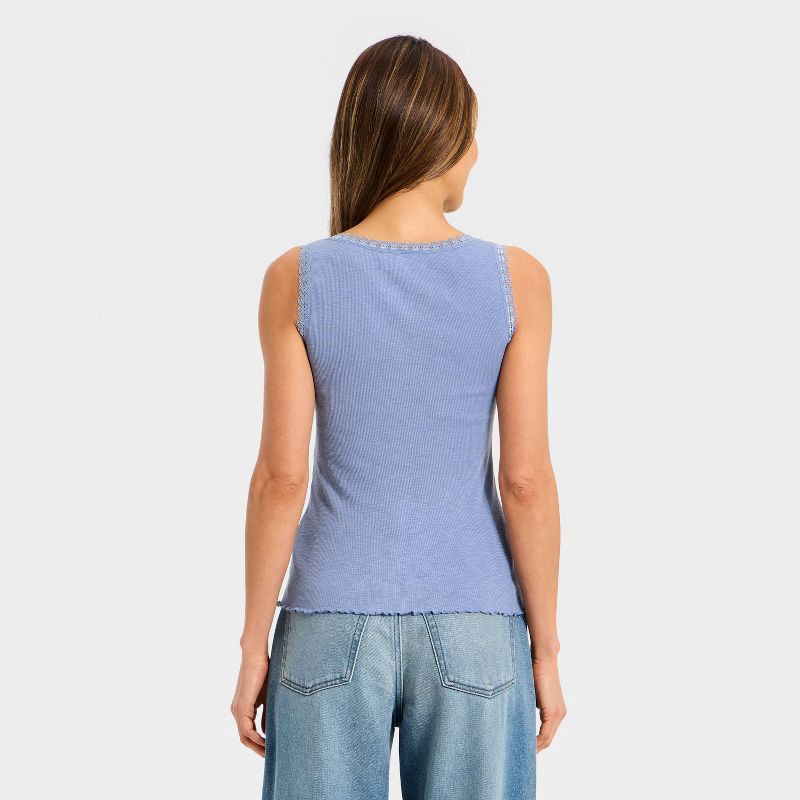 Women's Rib Lace Tank Top - Universal Thread™ Blue L