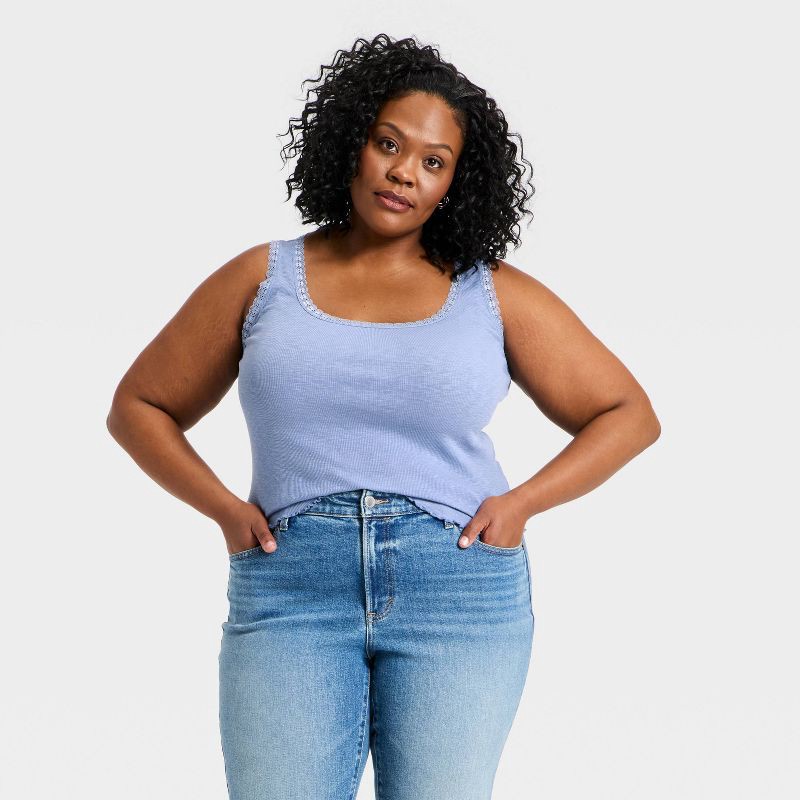 Women's Rib Lace Tank Top - Universal Thread™ Blue XXL