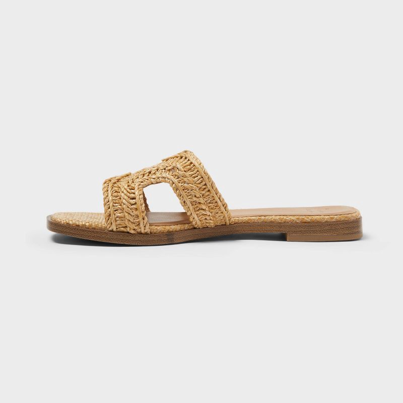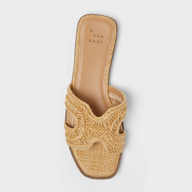 Elevate your style game with these Nina Slide Sandals from A New Day™. These sandals feature a single oran vamp with raffia detailing for a cool, breezy look. The slip-on design allows easy on and off…