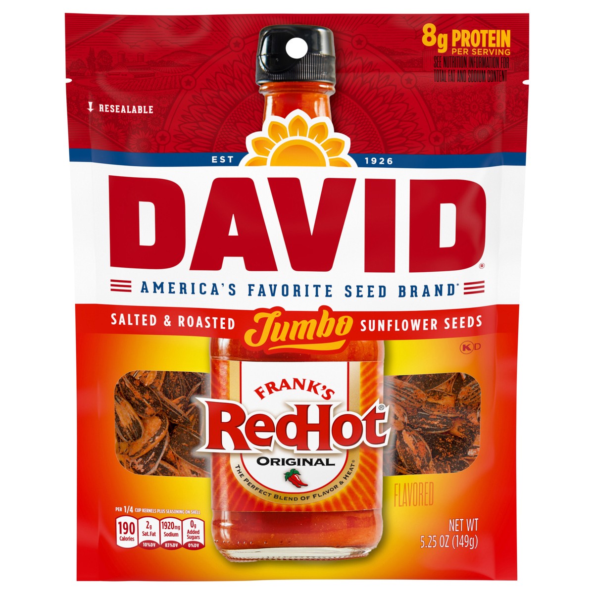 DAVID Jumbo Salted & Roasted Frank's RedHot Flavored Sunflower Seeds Jumbo 5.25 oz