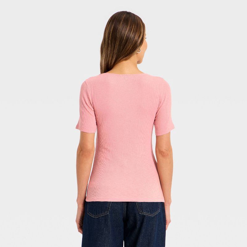 Women's Short Sleeve Lace V-Neck T-Shirt - Universal Thread™ Pink M
