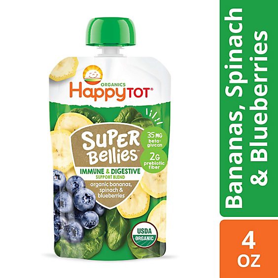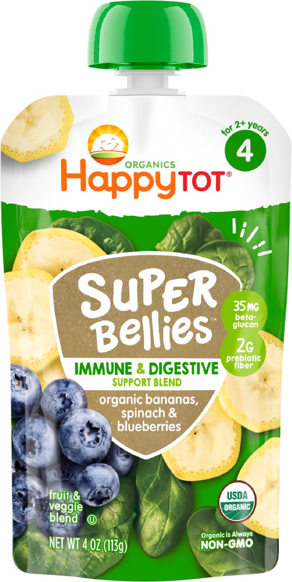 Happy Tot Organics Super Bellies Stage 4 Immune+digestive Support Bananas Spinach Blueberry - 4 Oz