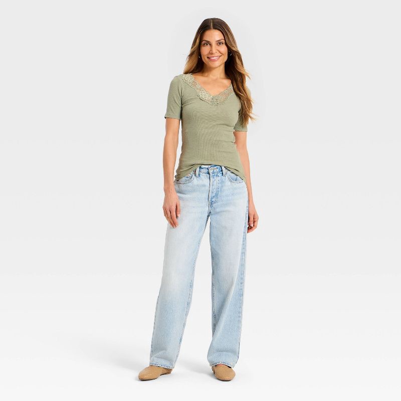 Elevate your everyday looks with this Short-Sleeve Lace V-Neck T-Shirt from Universal Thread™. Made of 100% cotton, this short-sleeve T-shirt provides all-day breathable comfort. It's fashioned with a…