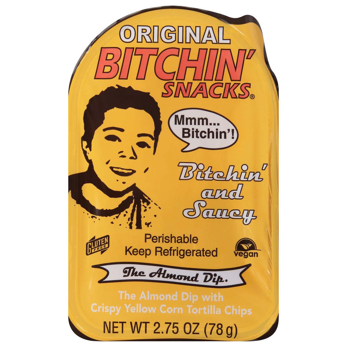 Our Original Bitchin’ Snacks are made with Original Bitchin’ Sauce, our award winning creamy, almond-based, lemon garlic flavored savory sauce, and crispy yellow corn tortilla chips. A totally Bitchin…