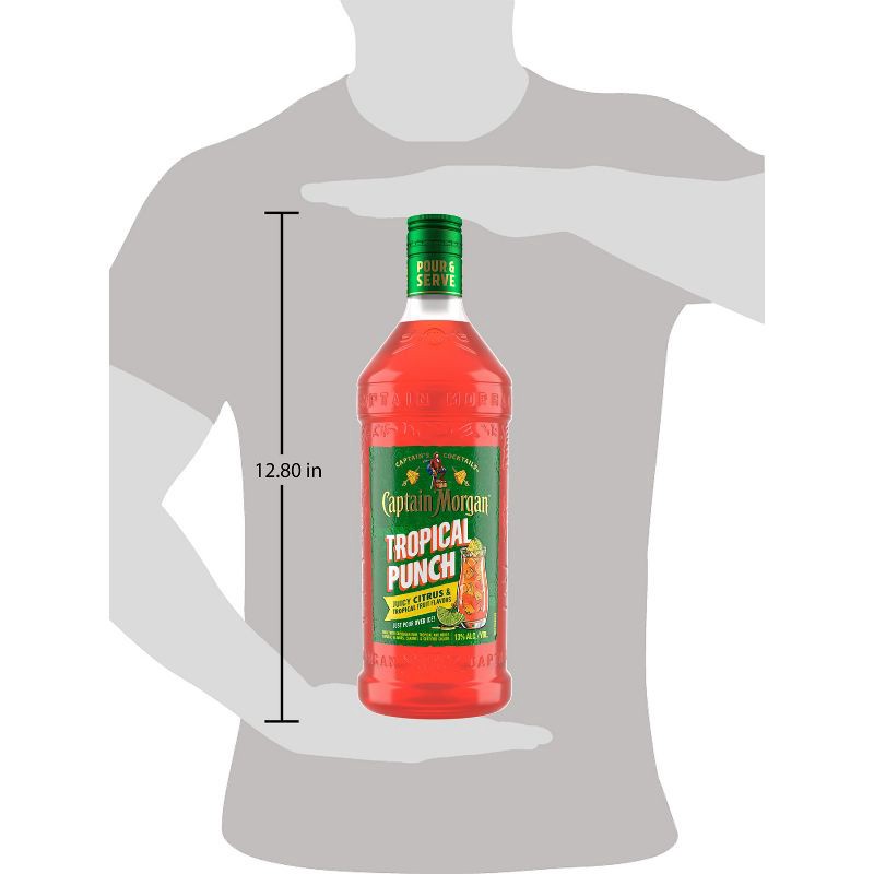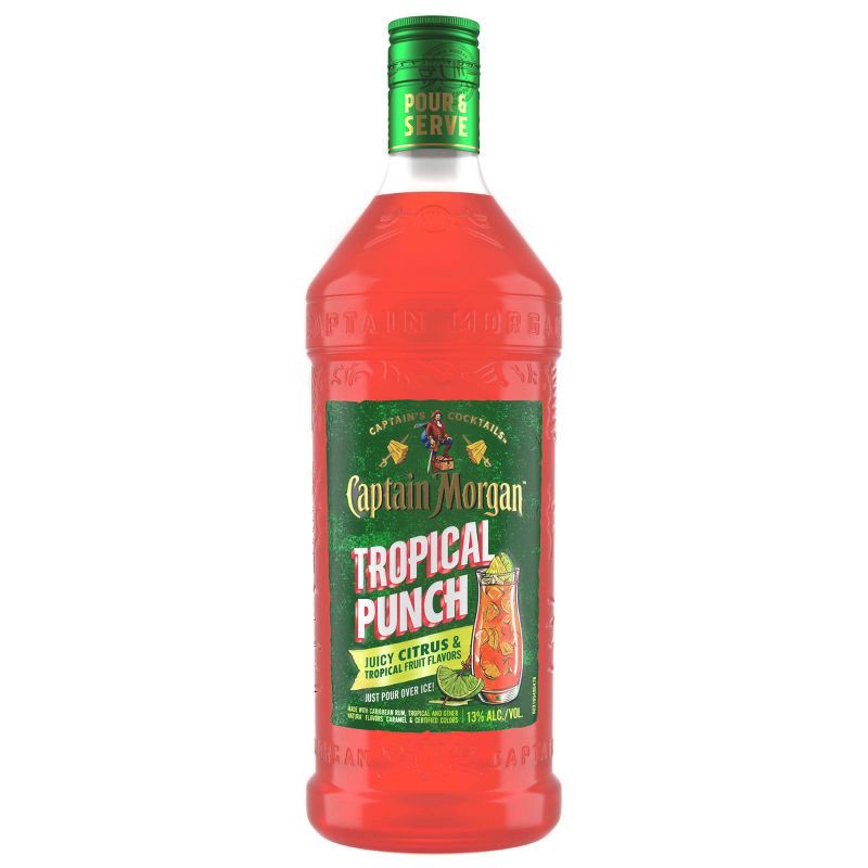 - One 1.75 L bottle of Captain Morgan Tropical Punch26 proofBrings the spirit of adventure to any partyBrings the spirit of adventure to any partyBlended with rum and juicy citrus and tropical fruit flavorsBlended with rum and juicy citrus and tropical fruit flavors. Ready to drink and easy to enjoy at any timeClassic, delicious tropical punch tasteBlended with rum and juicy citrus and tropical fruit flavors