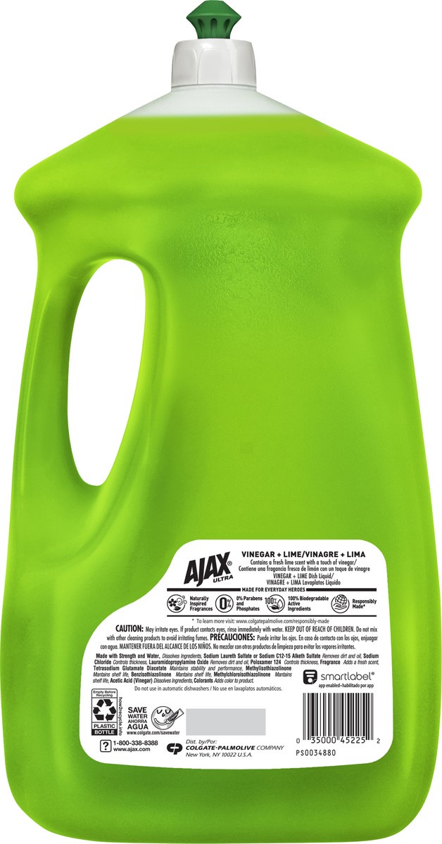 Ajax Ultra Liquid Dish Soap, Vinegar + Lime - 90 Fl. Oz.