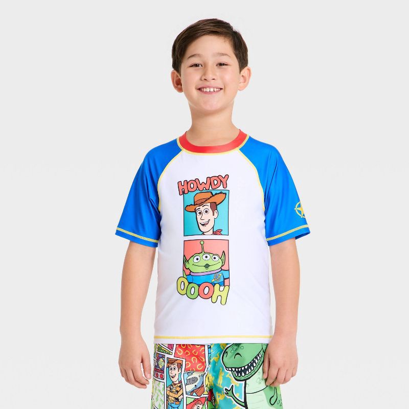 Disney Boys' Toy Story Rash Guard Swimsuit Tops - White 4
