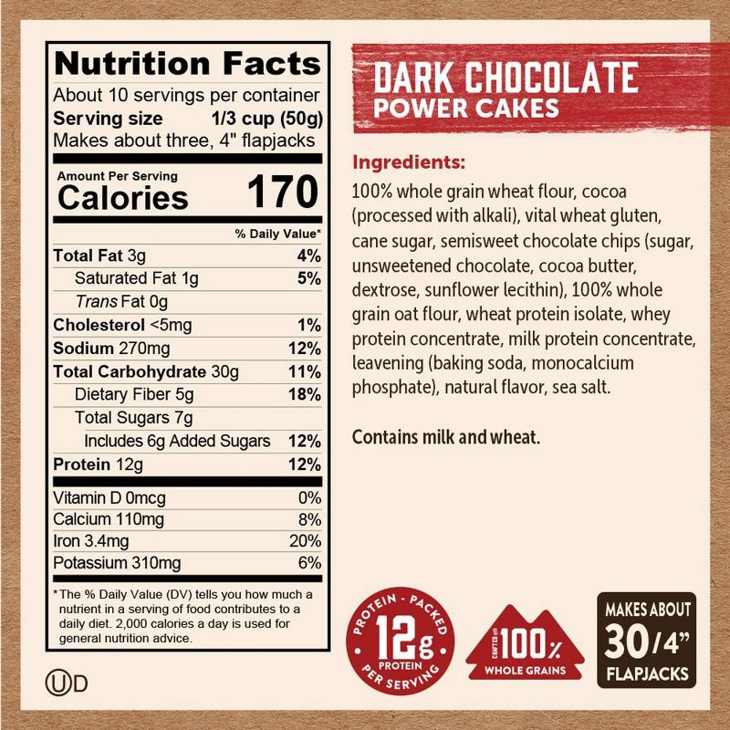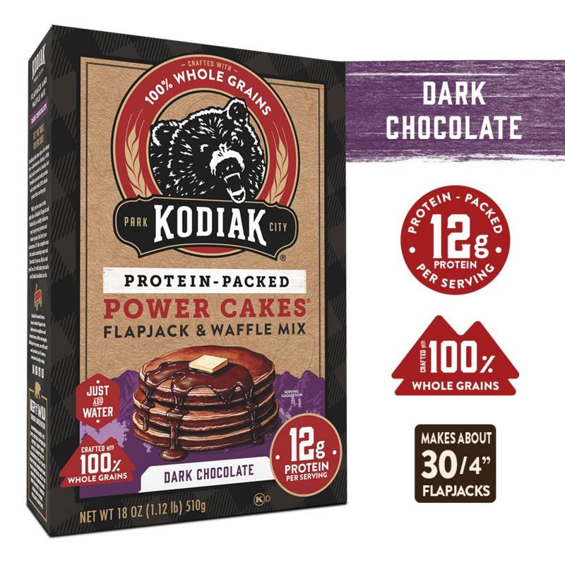 Kodiak Power Cakes Dark Chocolate Waffle and Pancake Mix is designed for those who want more from their breakfast. This flapjack and waffle mix is made with 100% whole grains, dark chocolate, and semi…