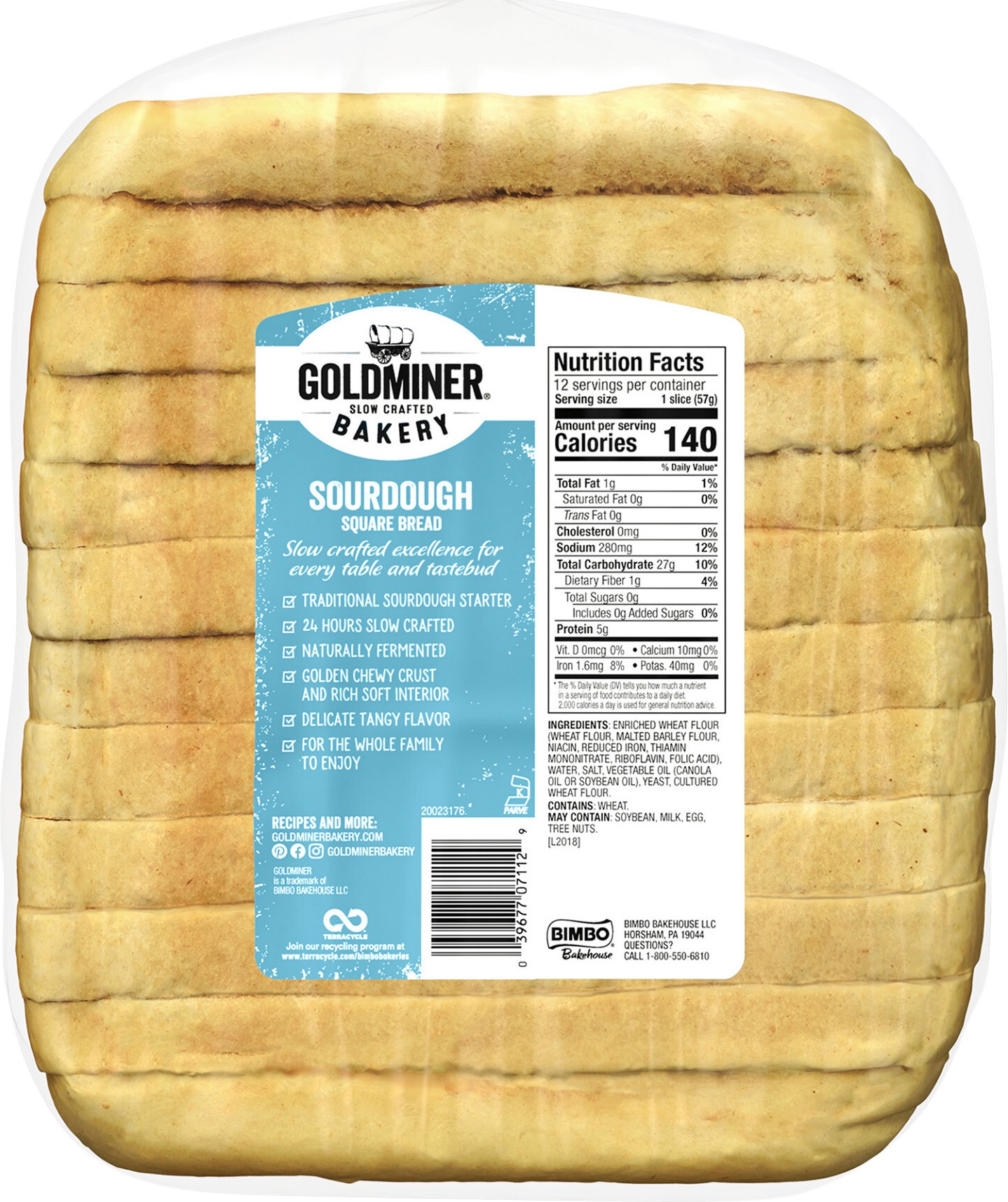 Each delicious loaf of Goldminer Sourdough Square Bread develops its distinctive flavor over the course of 24 hours in our authentic, day-long process. Made with no artificial colors, flavors or prese…