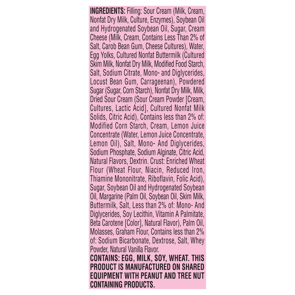 Filling: Sour Cream (Milk, Cream, Nonfat Dry Milk, Culture, Enzymes), Soybean Oil and Hydrogenated Soybean Oil, Sugar, Cream Cheese (Milk, Cream, Contains Less than 2% of Salt, Carob Bean Gum, Cheese …