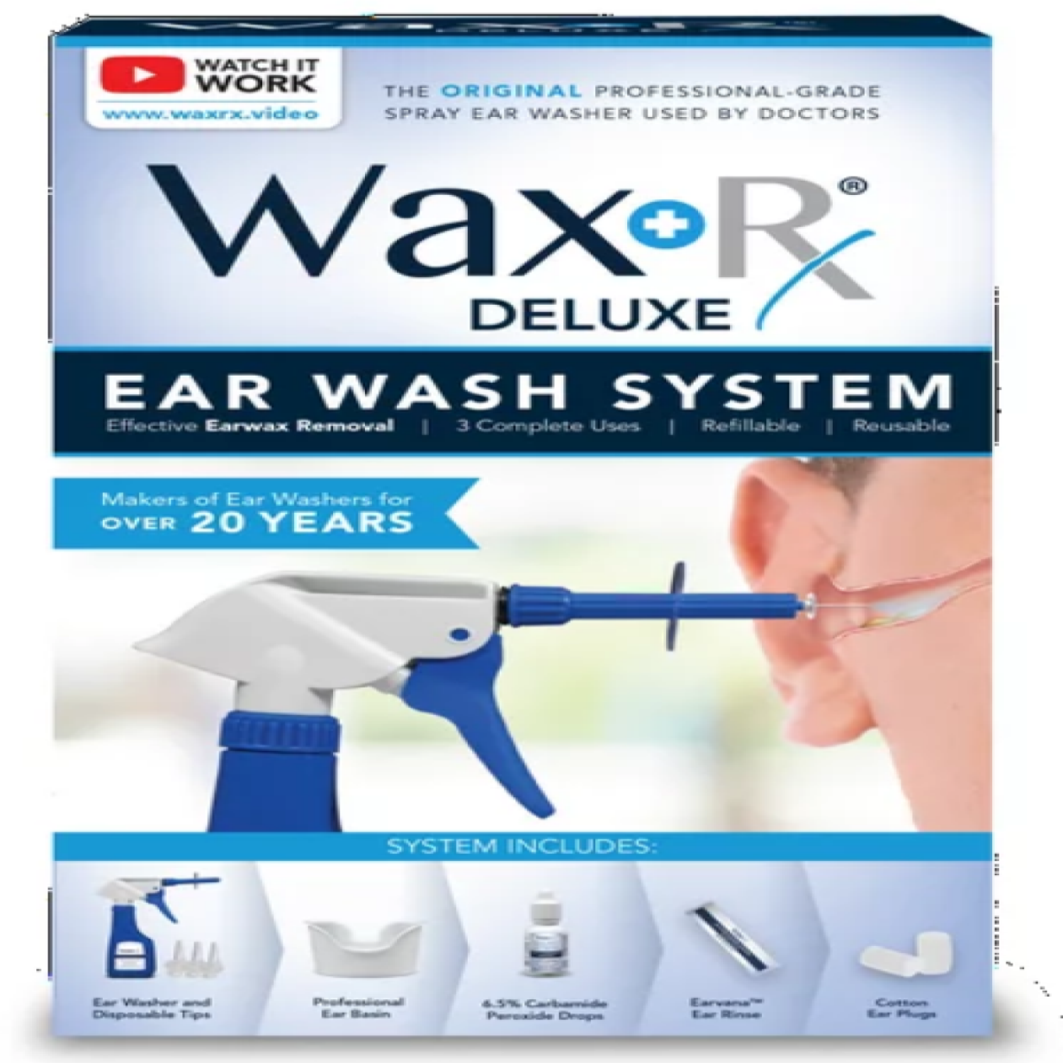 For HOME USE! SAVE $ with the WAX-RX all inclusive ear wash kit, specially designed for home use. Wax-Rx System eliminates ear wax PLUS soothes itchy ears! System includes 1- professional grade ear wa…