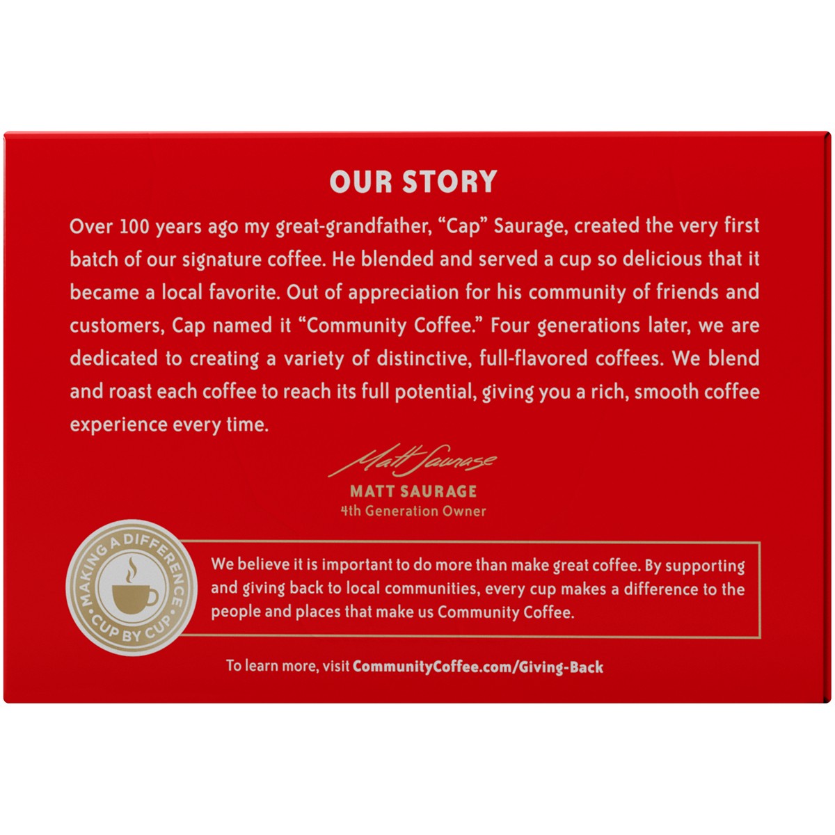 Over four generations ago, our founder "Cap" Saurage created our signature dark roast coffee. This special blend is roasted dark to develop rich, smooth flavor with a deep chocolate profile. Our maste…