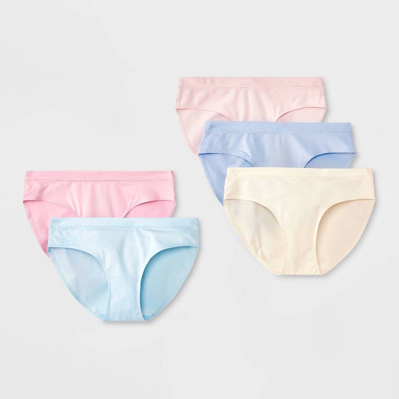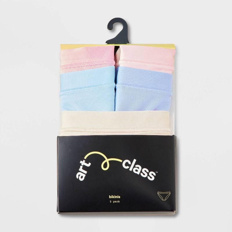 Soft, stretchy, and designed for all-day comfort, the Girls' 5pk Bikini Underwear from art class™ in Pink is a great choice for easy movement every day. Made from a lightweight blend of recycled polye…