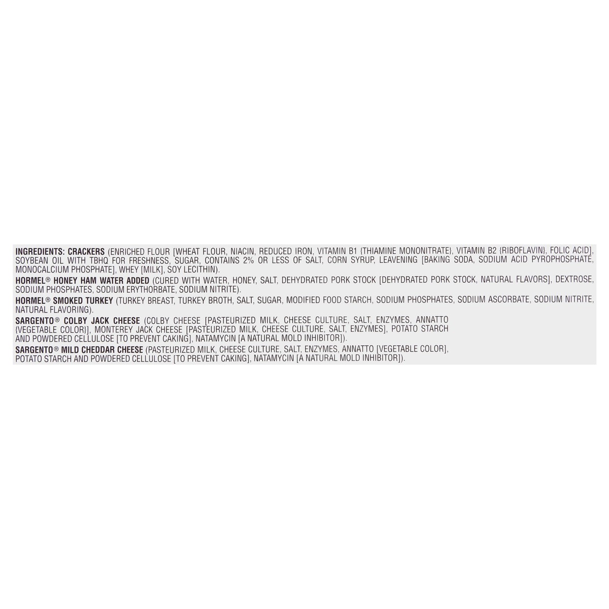 Hormel Smoked Turkey: Hormel Smoked Turkey (Turkey Breast, Turkey Broth, Salt, Sugar, Modified Food Starch, Sodium Phosphate, Sodium Ascorbate, Sodium Nitrite, Natural Flavoring). Crackers: Crackers (…