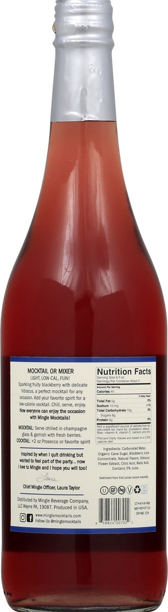 40 calories per serving. Gluten free. Vegan. Handcrafted. Non-alcoholic. Mocktail or mixer so everyone can enjoy the fun. Mocktail or mixer light, low-cal, fun! Sparkling fruity blackberry with delica…
