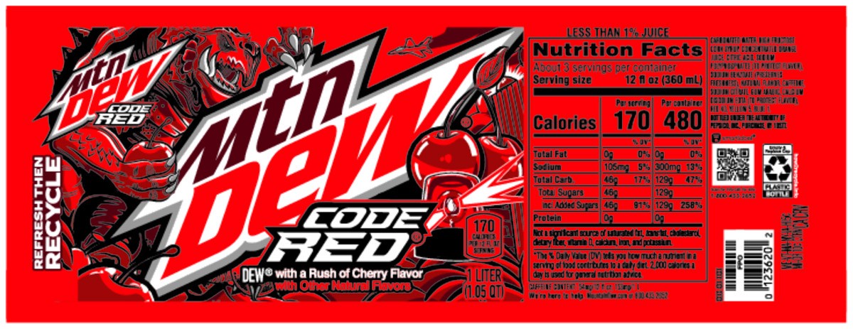 Mountain Dew Code Red Soda DEW With A Rush Of Cherry Flavor 1 L