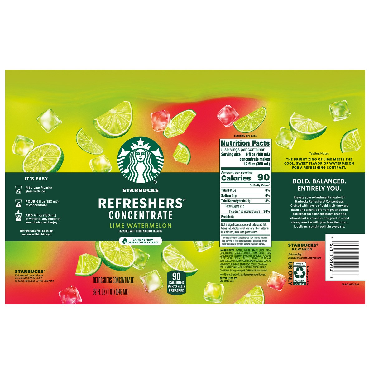 STARBUCKS REFRESHERS CONCENRATE LIME WATERMELON 32OZ