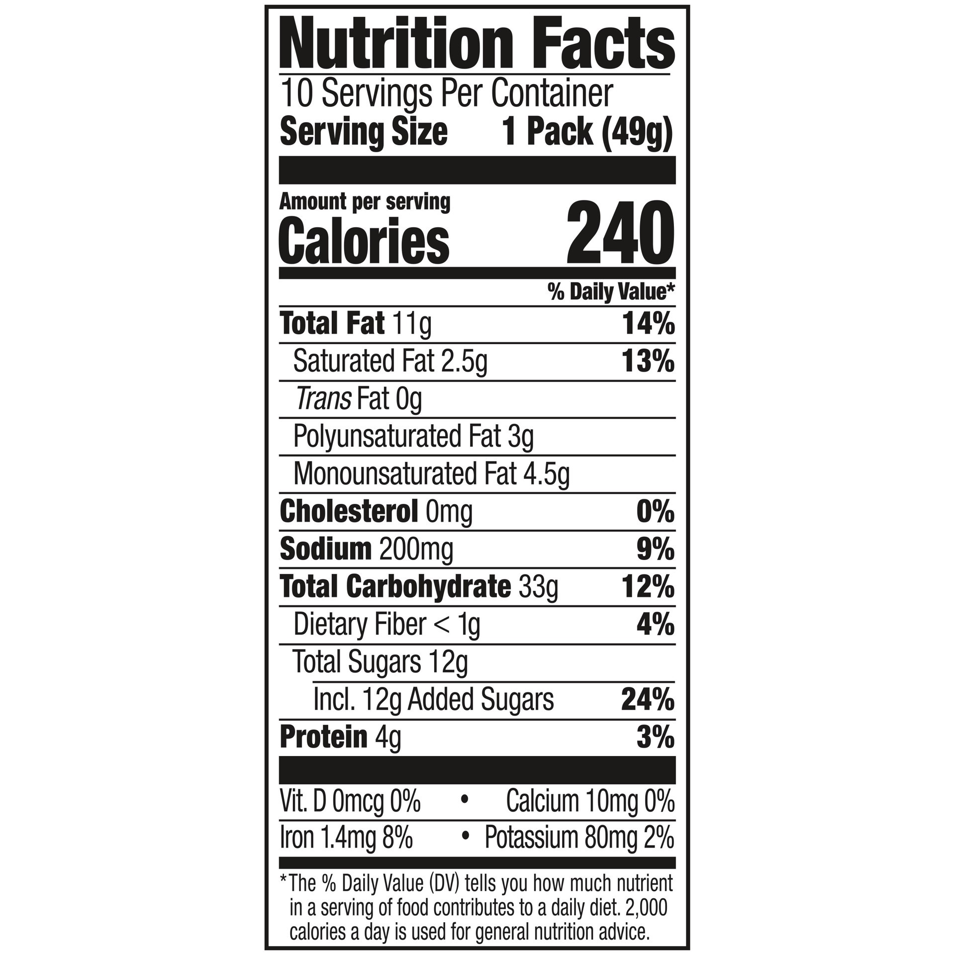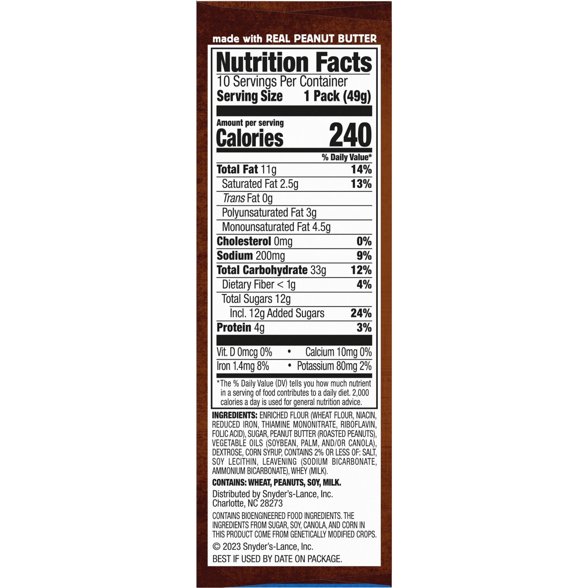INGREDIENTS: ENRICHED FLOUR (WHEAT FLOUR, NIACIN, REDUCED IRON, THIAMINE MONONITRATE, RIBOFLAVIN, FOLIC ACID), SUGAR, PEANUT BUTTER (ROASTED PEANUTS), VEGETABLE OILS (SOYBEAN, PALM, AND/OR CANOLA), DE…
