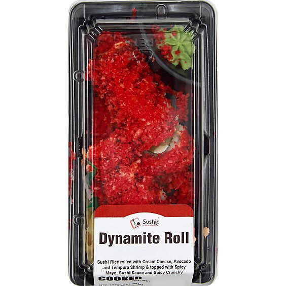 Sushi rice rolled with cream cheese, avocado and tempura shrimp & topped with spicy mayo, sushi sauce and spicy crunchy. Cooked. Perishable.