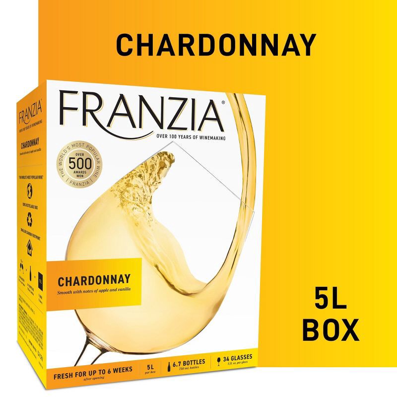 - One 5L box of Franzia Chardonnay equals seven standard wine bottles and serves thirty four 5oz wine glasses