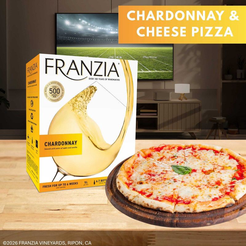 - Franzia Chardonnay is a medium-bodied semi-dry Chardonnay with stone fruit and hints of vanilla and oak.