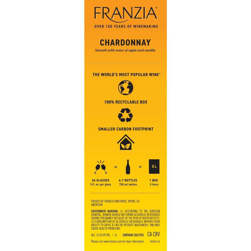Franzia Chardonnay white wine is a medium-bodied semi-dry wine with stone fruit and hints of vanilla and oak. With 12.5% ABV, this Chardonnay pairs well with pasta and chicken, making it a great choic…