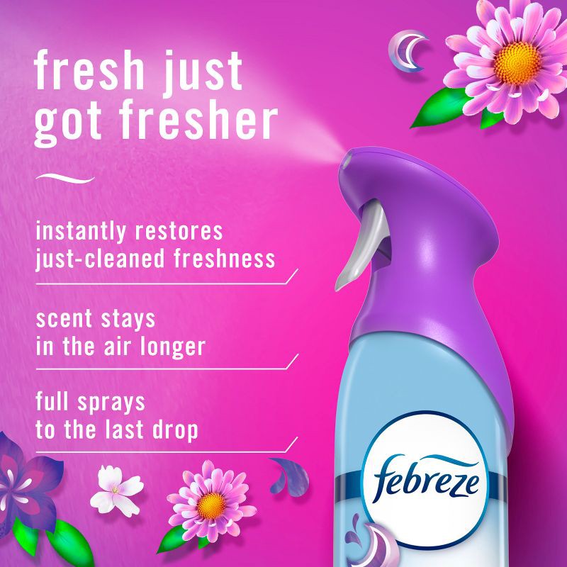 - FIGHTS ODORS: A household essential, Febreze Air Mist instantly restores any space with just-cleaned freshness