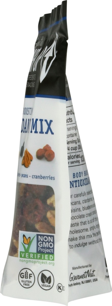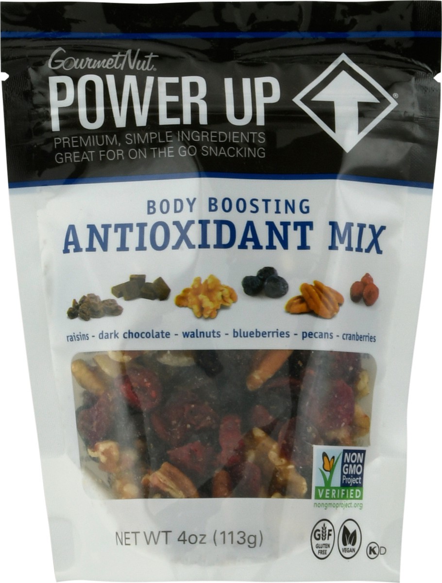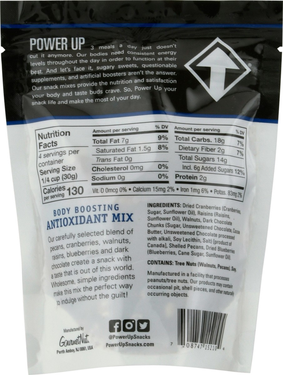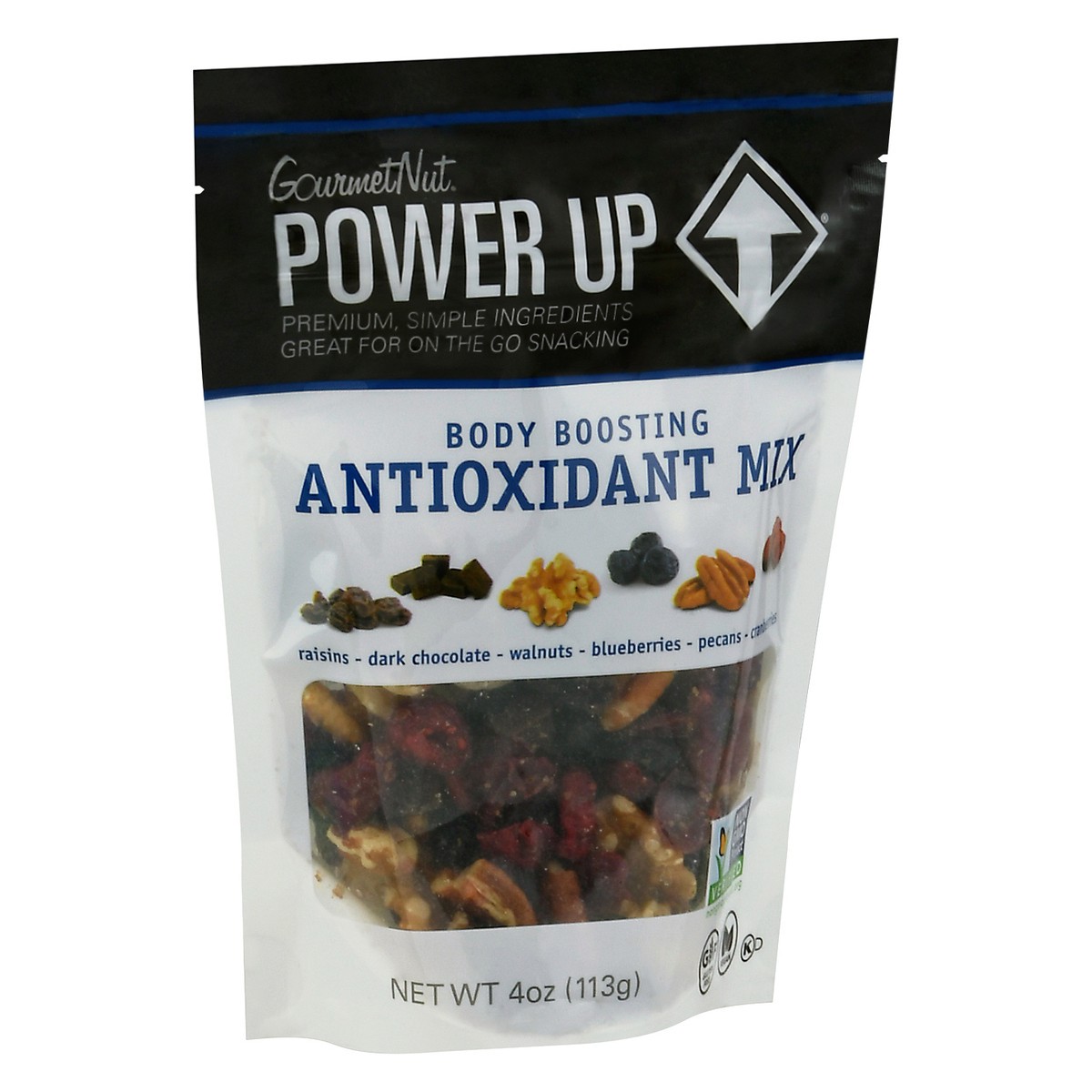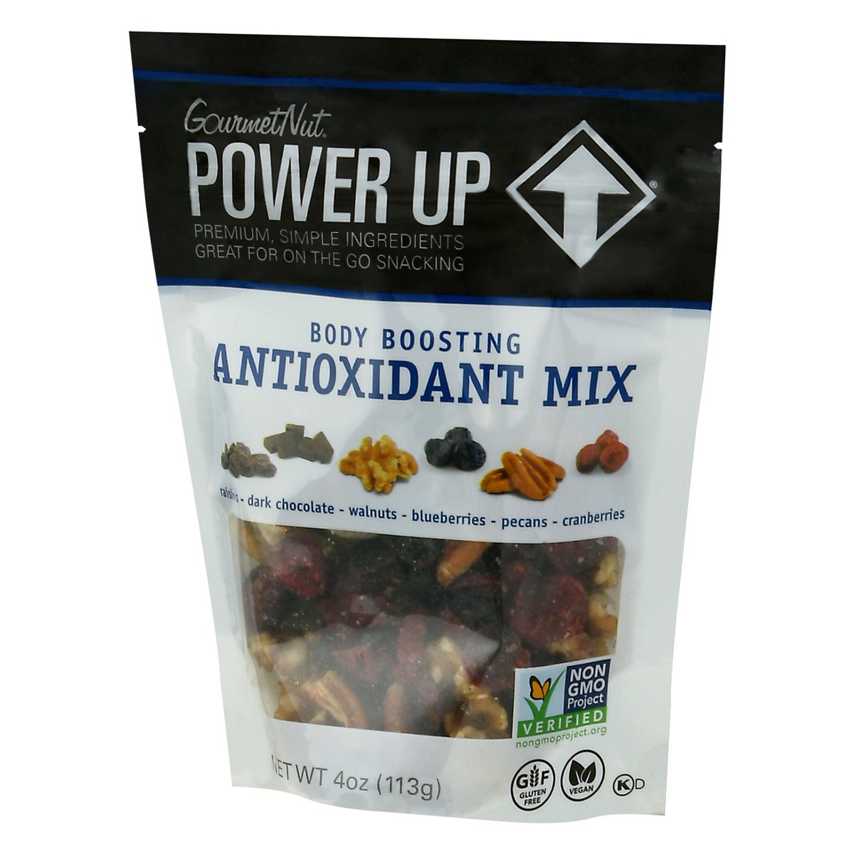 Raisins, dark chocolate, walnuts, blueberries, pecans, cranberries. Gluten free. Vegan. Non GMO Project Verified nongmoproject.org. Premium, simple ingredients. Great for on the go snacking. Power Up …