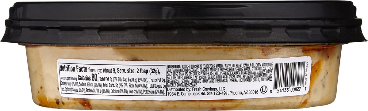 Cooked Chickpeas (Chickpeas, Water), Water, Oil Blend (Canola Oil, Extra Virgin Olive Oil), Tahini (Ground Sesame), Roasted Red Bell Peppers (Red Peppers, Water, Citric Acid, Salt), Sea Salt, Less tha…