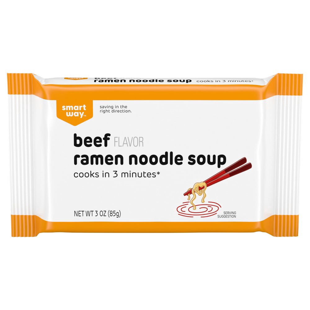 Smart Way™ Beef Flavor Ramen Noodle Soup packs a punch of flavor in 3 minutes! It's great for quick snacks or can be added to favorite dishes for a beef ramen-flavored kick. Delight in their vibrant t…