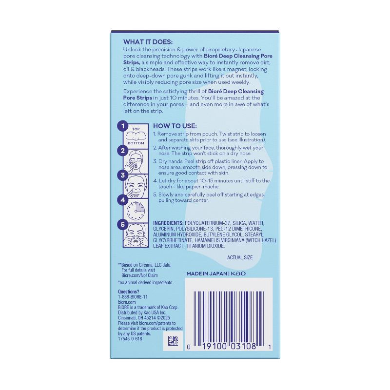 - DERMATOLOGIST TESTED: Bioré Pore Strips are cruelty-free and have a vegan-friendly formula