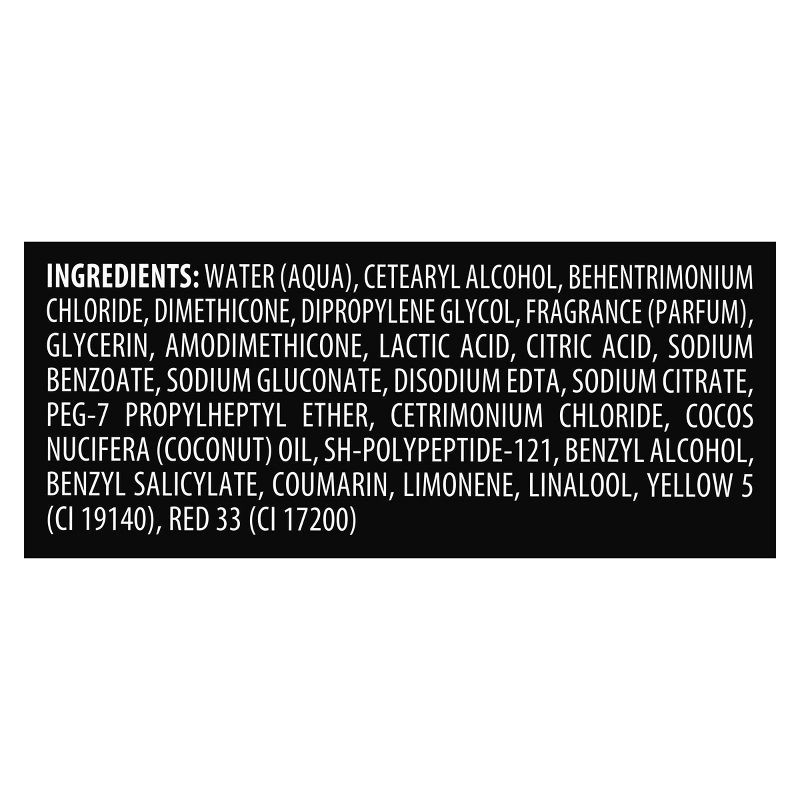 WATER (AQUA), CETEARYL ALCOHOL, BEHENTRIMONIUM CHLORIDE, DIMETHICONE, DIPROPYLENE GLYCOL, FRAGRANCE (PARFUM), GLYCERIN, AMODIMETHICONE, LACTIC ACID, CITRIC ACID, SODIUM BENZOATE, SODIUM GLUCONATE, DIS…