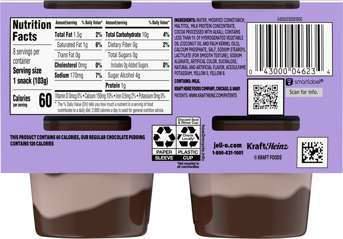 Snack happy. Jell-O Zero Sugar Chocolate Vanilla Swirls Artificially Flavored Pudding Cups deliver the great taste of Jell-O Pudding in a reduced-calorie choice. Our delicious on-the-go pudding comes …